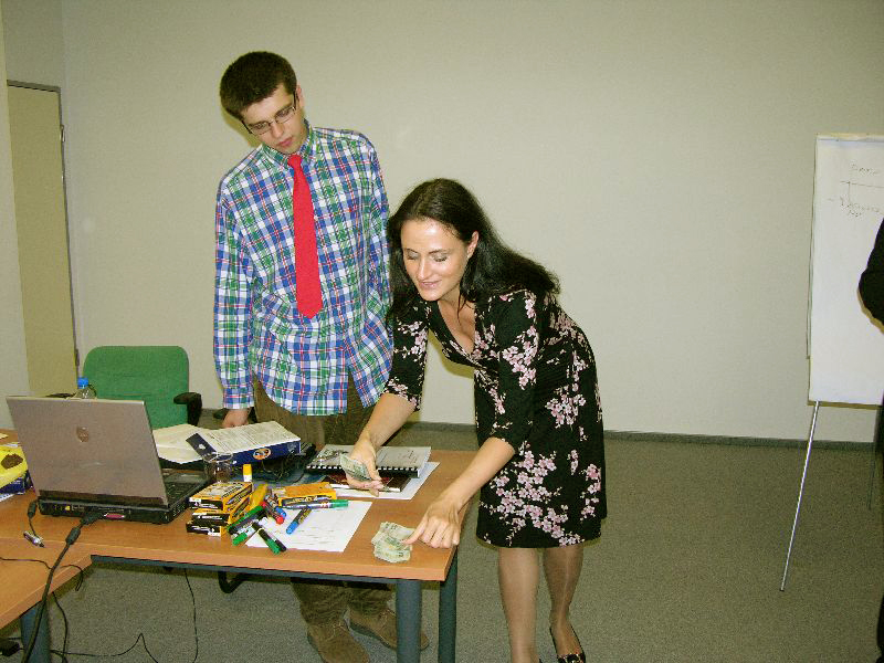 Komisja w osobach Aleksandry Dzięcielskiej oraz Łukasza Płotki odlicza 1870 zł w gotówce, którą za chwilę w całości otrzyma zwycięzca losowania...